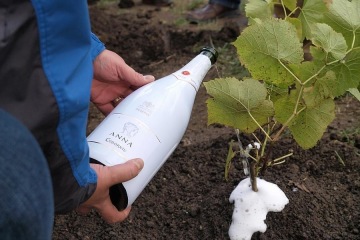 Výsadba vinné révy u Zahradního domku Egona Schieleho