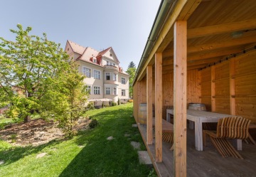 Die Villa im Stil der ersten Republik stammt aus dem Jahre 1932. Sie wurde im Jahre 2013 komplett umgebaut und komplett renoviert. Sie befindet sich auf einem Hügel über der Altstadt in einem ruhigen, parkähnlichen Wohngebiet, nur 8 Minuten zu Fuß vom historischen Marktplatz entfernt. Das gesamte Areal besticht durch eine phantastische Aussicht auf die Altstadt, das Schloss und die wunderschöne Umgebung. Der ausgedehnte Garten mit Terrasse und Pergola laden Sie zum Verweilen und Relaxen ein.