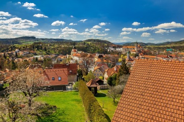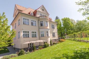 The First Republic villa built in 1932 was sensitively reconstructed in 2013 and renovated completely. It is situated on an elevation over the old city in a calm residential neighbourhood, at the edge of the park only 8-minute walk from the Square of Concord (Náměstí Svornosti). The whole hotel grounds provide a superb view of the old city, the castle and chateau complex and the splendid surroundings. The garden with a terrace and a pergola tempts you to unwind and relax. Let yourself get inspired!