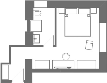 A double room with a side view of the old city is situated on the 1st floor. Floor area: 18,68 m² / bathroom: 4,12 m²