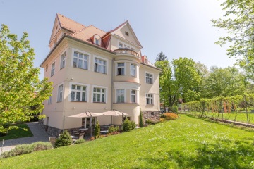 Prvorepubliková Villa Beatika z roku 1932 byla v roce 2013 citlivě přestavěna a kompletně zrenovována. Nachází se na vyvýšenině nad starým městem v klidné obytné čtvrti, na okraji parku, jen 8 minut chůze od náměstí Svornosti. Celý areál skýtá fantastický výhled na staré město, zámek a překrásné okolí. Zahrada s terasou a pergolou láká k posezení a odpočinku.